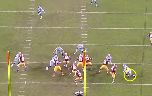Everyone has had their say on the read-option this offseason, but one of the more overlooked aspects is the effect it has on a pass-rusher. Mike and Kyle Shanahan have both emphasized just how much the read-option slows down pass-rushers and helps protect Robert Griffin III in the pocket. Read-option fakes lead to some of the Redskins biggest plays last year Pass-rushers are forced to wait through the mesh point of the read-option fake before they can get after the quarterback, giving Griffin that little bit extra time to go through his progressions. Here’s an example of DeMarcus Ware, one of the best pass-rushers in the NFL.