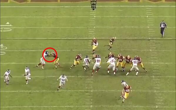 If I had said to you at the start of the year, the Redskins would be able to easily block DeMarcus Ware, Osi Umenyiora and Justin Tuck with Tyler Polumbus, Logan Paulsen and Darrel Young, you’d have called me crazy. But the threat of the read-option allows the read-option fakes to drastically slow down pass-rushers, making it possible for tight ends, backs and lesser tackles block quality pass-rushers.